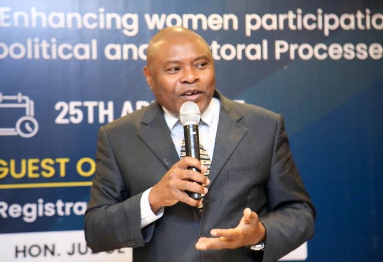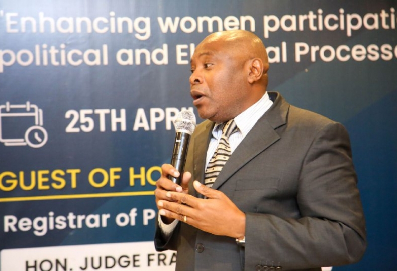 The Deputy Registrar of Political Parties, Hon. Sisty Nyahoza speaking at a workshop to review report on the analysis of gender gaps in the legal documents of political parties organized by Tanzania Center for Democracy (TCD) in collaboration with the Switzerland Embassy in Tanzania at Four Points by Sheraton Hotel in Dar es Salaam on Tuesday 25th April 2023.